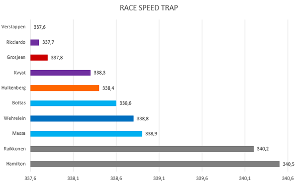 Inoltre ci fa anche notare come anche se sia un circuito di motore, a Sakhir, ci sia anche bisogno di carico, come risulta evidente dal netto taglio presente fra le velocità dei primi 5.