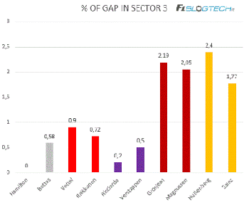 Ad ogni modo, guardando il gap nel terzo settore si può notare che la Red Bull è stata la scuderia che più si è avvicinata alla Mercedes grazie alle sue doti telaistiche e ai suoi eccellenti sforzi di trazione.