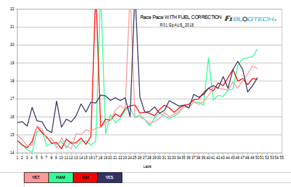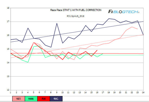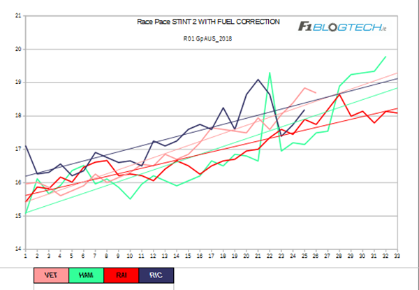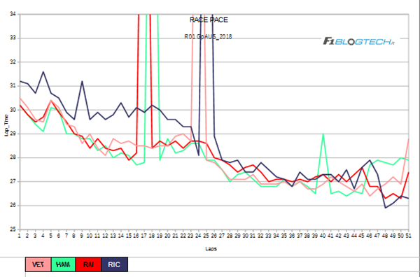 Passo gara ( Vettel, Hamilton, Raikkonen e Ricciardo) .