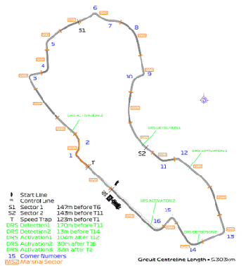 Con i suoi 5.3 km è uno dei circuiti più lunghi del mondiale e per le sue numerose curve e sezioni tecniche richiede un livello medio alto di carico aerodinamico.