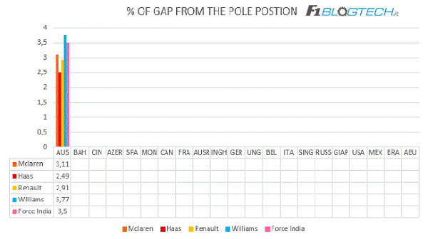 % di distacco dalla pole dei tre top team ( Mercedes, Red Bull e Ferrari).