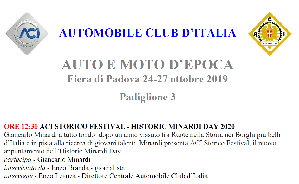 Alla Fiera di Padova, l’ Historic Minardi Day presenta l’ACI Storico Festival, il nuovo appuntamento 2020