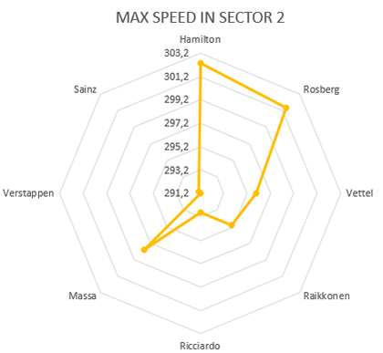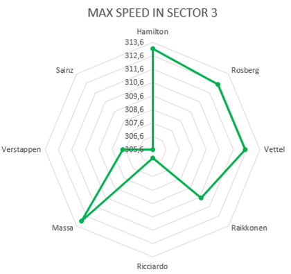Guardando il grafico in cui viene messo a confronto il tempo reale in Q3 con il giro “ideale” (dato dalla somma dei migliori intertempi), notiamo intanto che quasi tutti i piloti entrati in Q3 sono riusciti ad ottenere la performance migliore proprio quando più serviva, con differenze minime per Rosberg, Ricciardo e Verstappen, mentre invece Sainz avrebbe potuto sopravanzare il compagno di squadra.