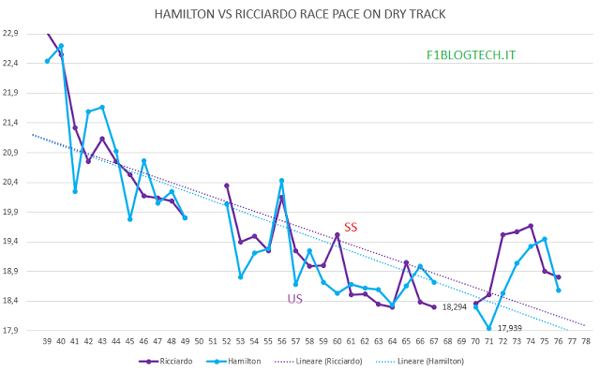 Emerge dunque una Red Bull estremamente competitiva e con un chiaro e forte vantaggio negli sforzi di trazione, che da sempre sono stati una peculiarità delle vetture firmate Newey, tenendo però sempre conto di un Ricciardo davvero in grande forma.