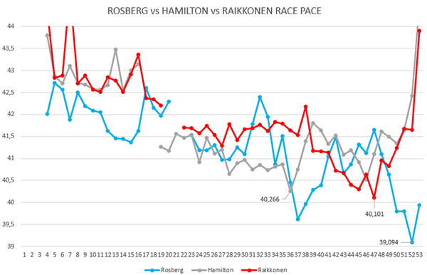 Forte anche la performance in gara, con Ricciardo con un terzo stint di gara molto vicino a quello di Rosberg ( anche se lui stava gestendo la gara), come potrete notare dai grafici in fondo.