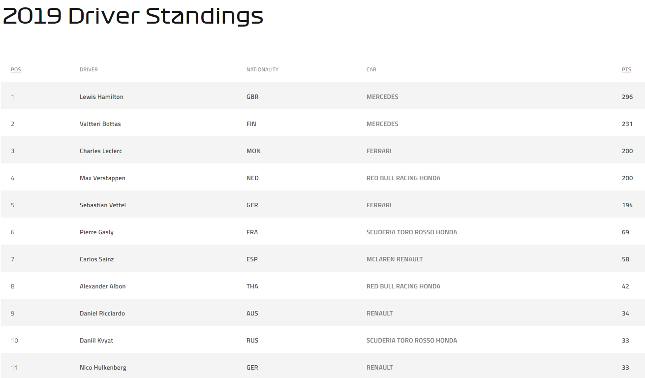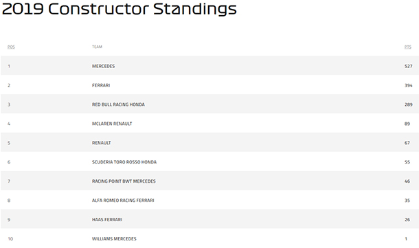 F1 | Constructor Standings after Singapore GP
