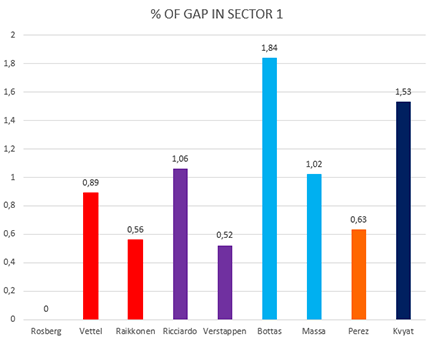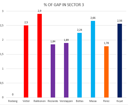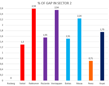 Guardando i grafici con i distacchi percentuali, risulta evidente che è nel secondo settore e nel terzo (ma soprattutto nel terzo) che è arrivata la vera batosta sugli avversari, ed è molto facile capire il perché.