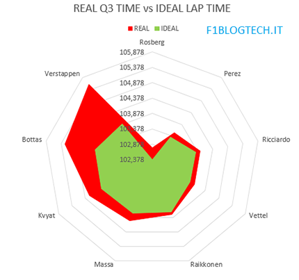 Nessuno dei dieci piloti qualificati nel Q3 (non prenderemo in analisi Hamilton) è riuscito a segnare il suo miglior tempo nell’ultima fase. Partendo da Rosberg che non ha nemmeno migliorato dal Q2, arrivando poi a Bottas e Verstappen che ci sono andati lontani addirittura di secondi!