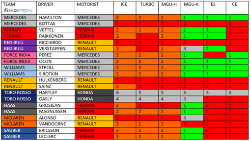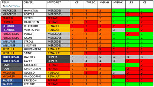 Componenti della PU utilizzati da ogni pilota dopo il Gp d’Austria.