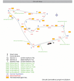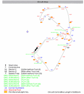 E’ un circuito da medio carico aerodinamico, molto severo per l’impianto frenante e per l’unita motrice (il 74% del giro viene percorso a farfalla completamente aperta).