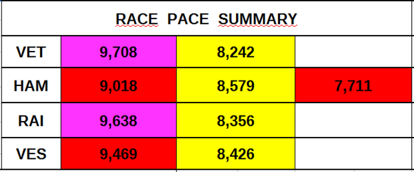 Infine proponiamo una tabella riassuntiva dei passi gara durante i vari stint.
