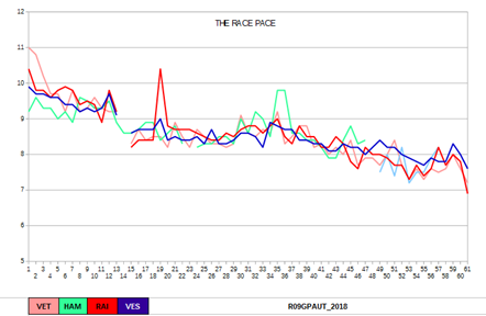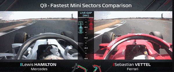La Ferrari guadagnava molto in uscita da curva 3, a conferma degli eccellenti sforzi di trazione della Rossa emersi in particolare (nel confronto con la Mercedes) in questi ultimi tre Gp, e nella frenata di curva 4. (questi particolari si potevano notare dagli onboard live, che non sono più reperibili su internet).