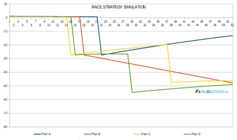 Inoltre proponiamo anche un grafico che evidenzia le strategie utilizzate dai piloti