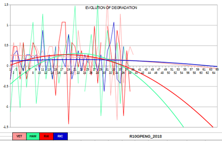 Il grafico dell’evoluzione del degrado non lineare durante l’arco della gara.